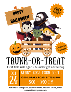Join us on Thursday, Oct. 24th, 5-7 pm at Kenny Ross Ford South in Castle Shannon for our 2nd annual Trunk-or-Treat.