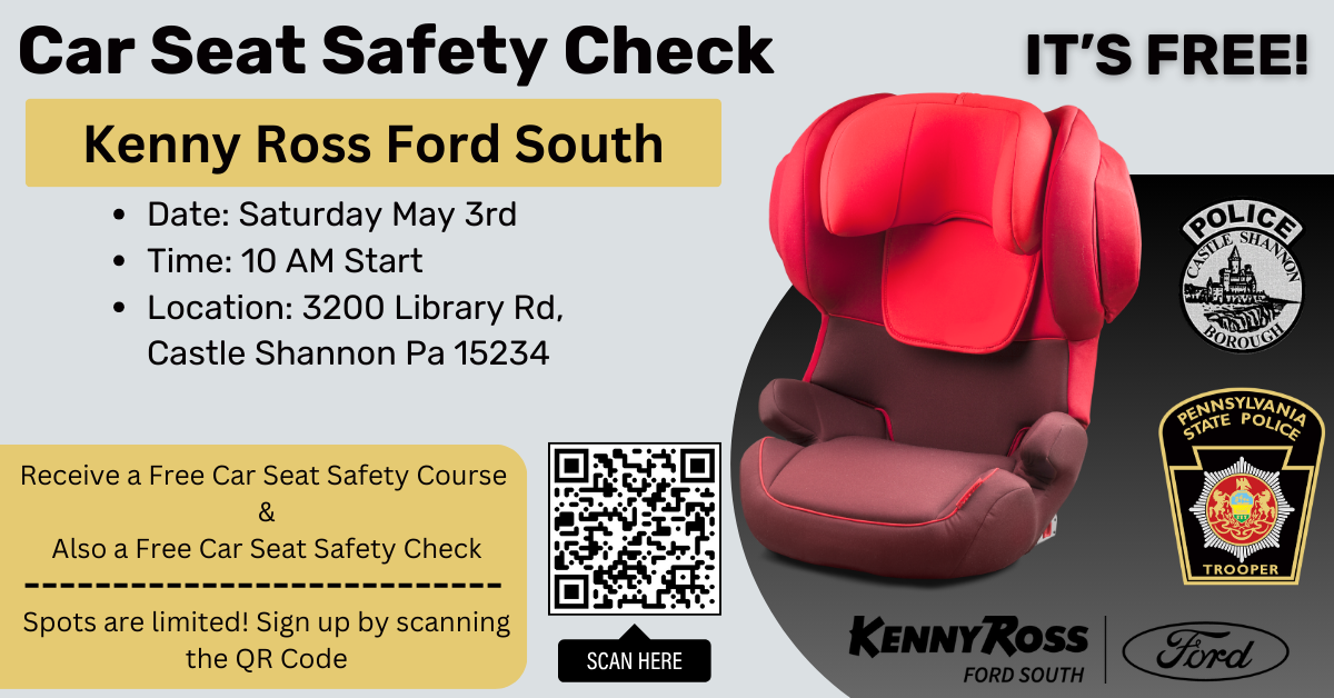 Kenny Ross Ford South is hosting our first Car Seat Safety Check with the PA State Police and Castle Shannon Borough Police.