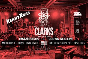 Gig on Main 24 is a free street festival featuring Pittsburgh’s most beloved band- the Clarks! The Mazeroski’s and Justin Sellers will also be performing. There will be food trucks. Kids are welcome. For more info, click here: https://www.facebook.