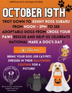 Kenny Ross Subaru is partnering with Cross Your Paws Rescue for another fun adoption event. Stop in to see the dogs, make a donation, or purchase some items for your pups.